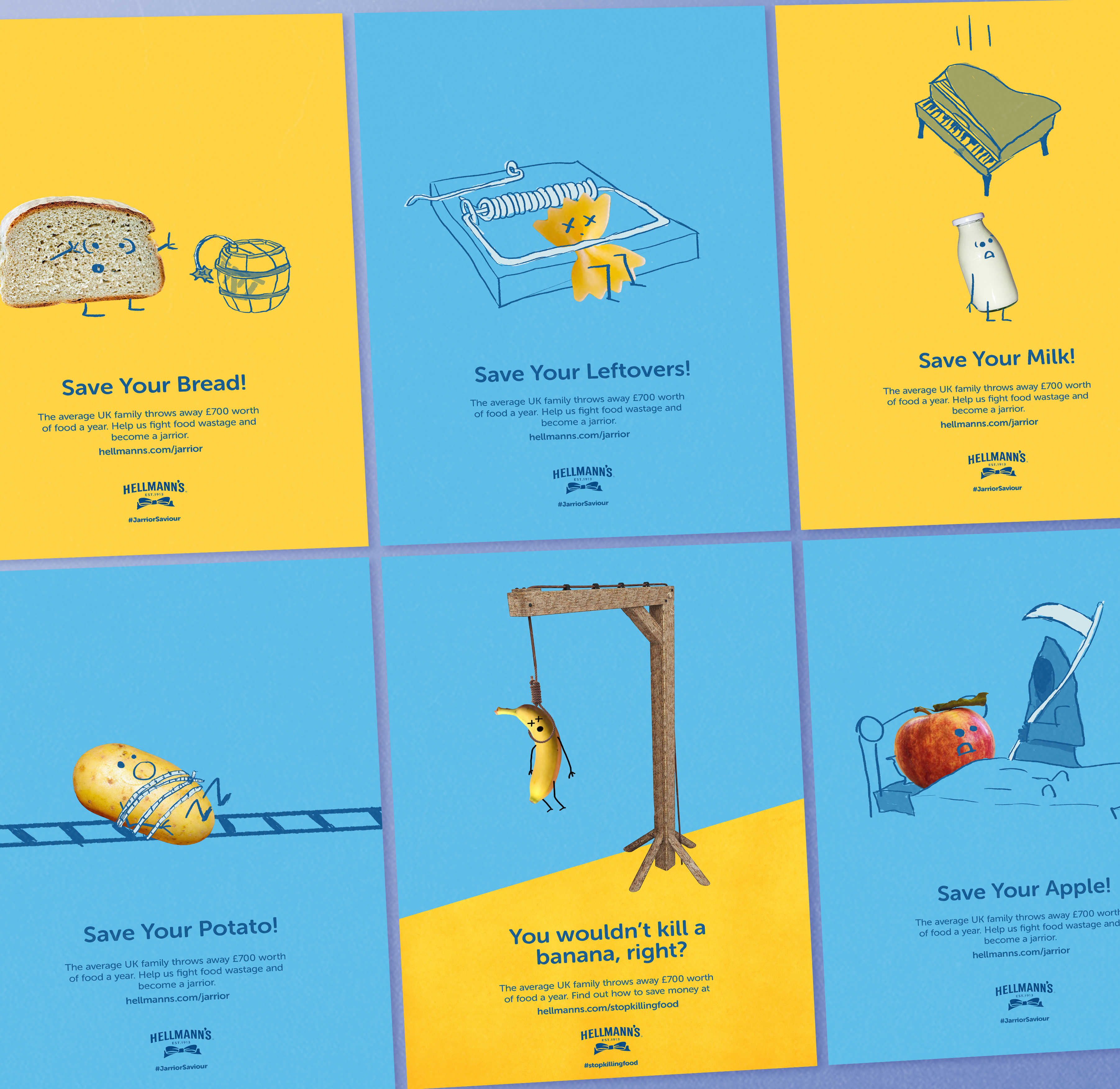 Entry for the 2018 D&AD New Blood Awards. The top 5 most wasted foods in the UK (bread, potatoes, apples, milk and leftovers) are fed up with you for not giving them the attention they deserve. In this campaign, along with the fun posters, the classic Hellmann’s jar is used as a device to address the issue of food wastage and save food.